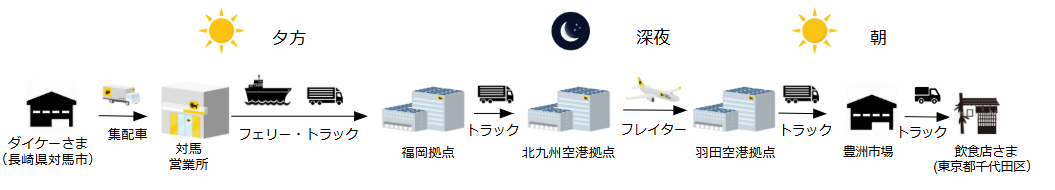 ■輸送例:長崎県対馬市の水産事業者「株式会社ダイケー」さまから東京都内の飲食店さまに活魚を輸送