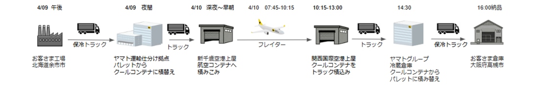 今回、共創活動の一環として、新たに就航した新千歳空港-関西国際空港間のフレイターを活用し、国分グループ関連会社である倉島乳業株式会社の製造するフレッシュな牛乳を北海道から輸送いたしました。