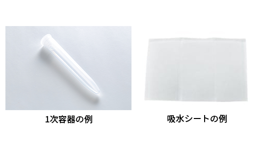 また、仮に1次容器が破損した場合に備え、内容量分の吸水シート等で1次容器を覆ってください。