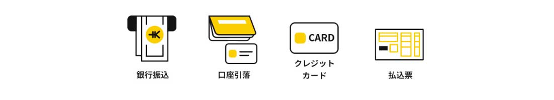 お支払いは、銀行振込・口座引落・クレジットカード払い・払込票から選択いただけます。