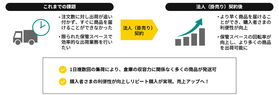 購入者さまをお待たせすることなく商品をお届けできるようになりました。購入者さまの利便性が改善されたことが顧客満足度と売上の向上にもつながっています。