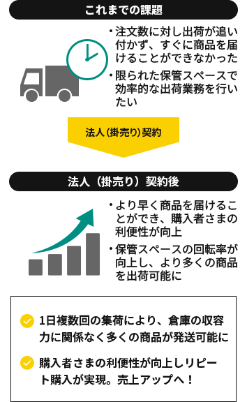 希望に合わせた集荷対応で出荷業務を効率化、限られた保管スペースで出荷数が大幅アップ