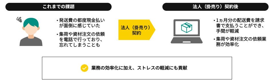 都度払いの煩わしさが解消、さらにヤマトビジネスメンバーズの登録により資材注文や集荷をWeb経由で依頼できて効率的に