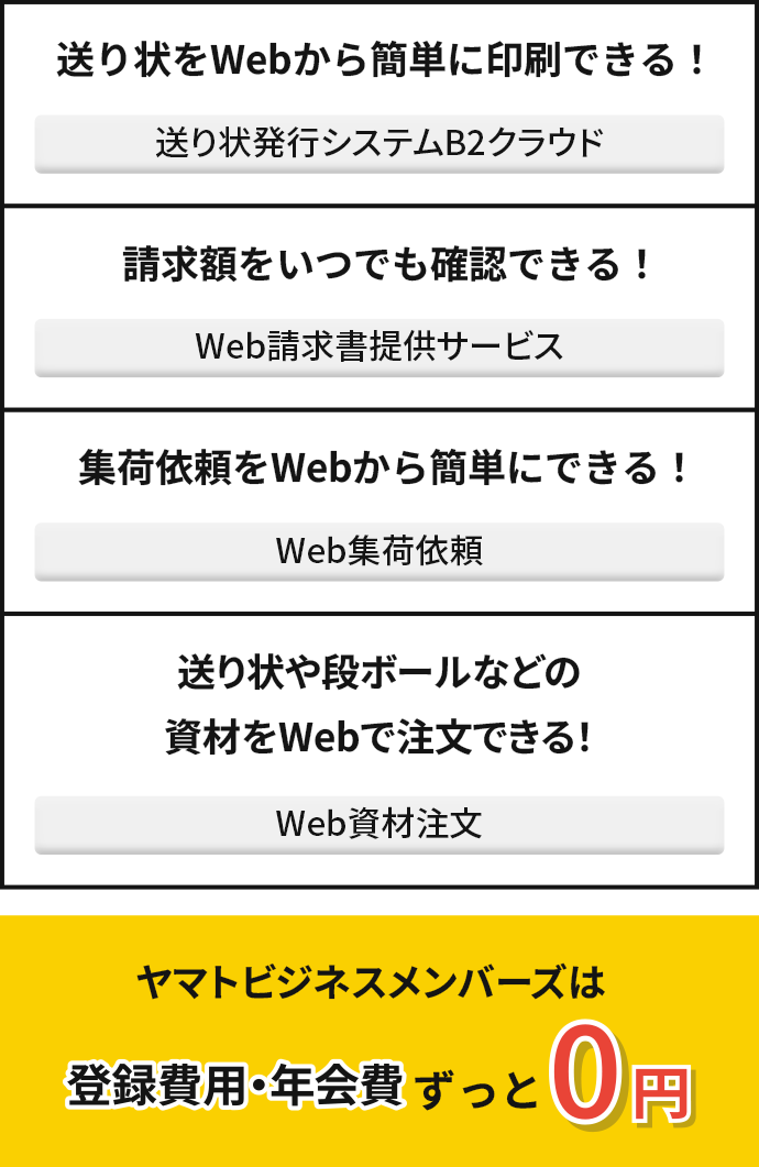ヤマトビジネスメンバーズは一部有料サービスがございます。