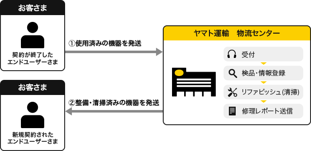 不具合品の回収から修理・清掃、そして代替品や修理品の発送まで、ヤマト運輸がトータルサポートいたします。